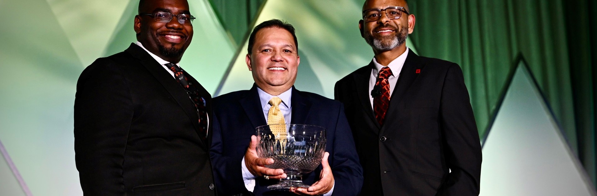 Kirk D. Rodriguez of Texas Tech University accepts the highest honor awarded by the National Association of College & University Food Services (NACUFS), the Theodore W. Minah Distinguished Service Award at the NACUFS 2025 National Conference on July 10, 2025, in Salt Lake City, Utah.